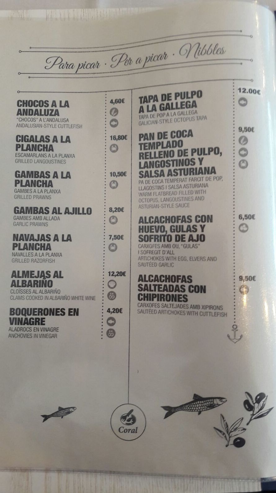 En restaurante Coral en Barcelona, te ofrecemos gran calidad en cocina Gallega con productos frescos,pero ademas, también puedes encontrar en nuestra carta : tapas,raciones y platos de una gran variedad dentro de la cocina meditrerránea